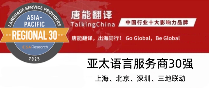 此外,唐能翻译连续多年入选国际知名机构CSA发布的“亚太地区语言服务商30强”榜单,并获得中国翻译行业十大影响力品牌认证,同时担任中国翻译协会理事单位及深圳专利协会会员单位。